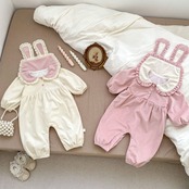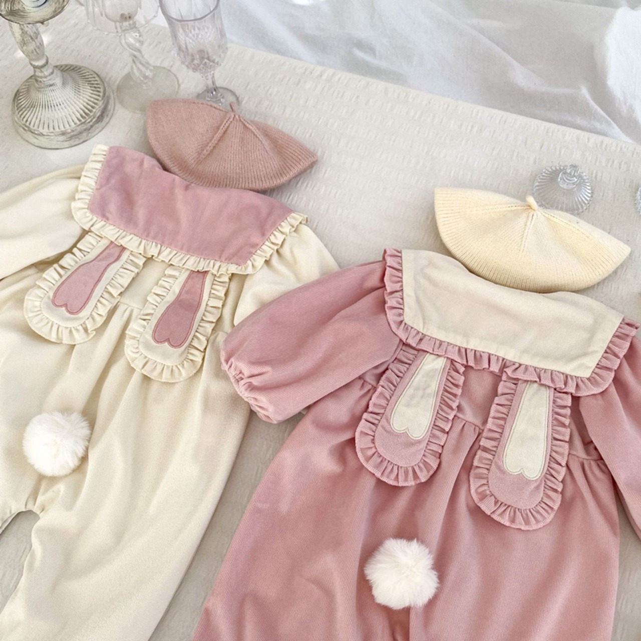 春新作 ベビー服 ピーターパン襟 ウサギ耳 オールインワン 可愛い ロンパース 子供服 おしゃれ